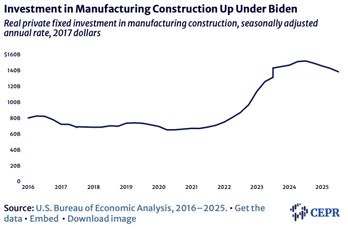 Factory Construction Soared Due to Biden Measures, But Trailed Off in 2025