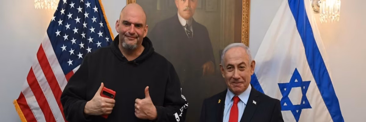 US Sen. John Fetterman (D-Pa.) meets with Israeli Prime Minister Benjamin Netanyahu on Capitol Hill in Washington, DC on February 6, 2025.