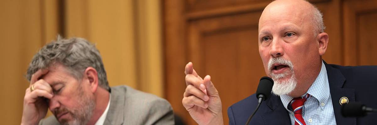 US Rep. Chip Roy (R-TX) and Rep. Rep. Thomas Massie (R-KY) participate in a House Judiciary Subcommittee hearing in the Rayburn House Office Building on April 01, 2025 in Washington, DC. The House Judiciary Subcommittee on Courts, Intellectual Property, Artificial Intelligence, and the Internet and the Subcommittee on the Constitution and Limited Government held a joint hearing to investigate judicial overreach and limits on federal courts.