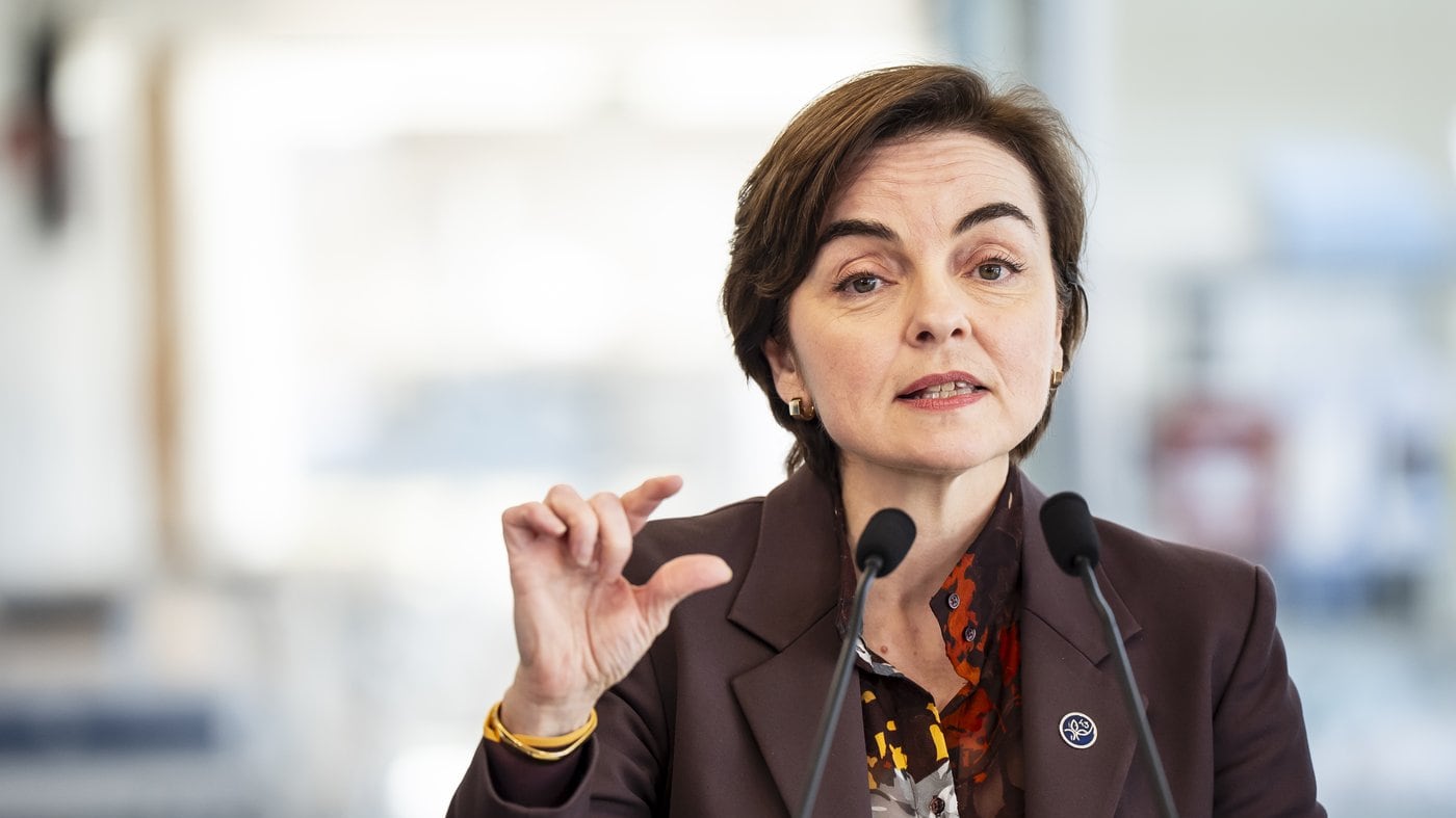 Quebec Premier Christine Fréchette makes a funding announcement at the Rosemont-Maisonneuve Hospital in Montreal on Thursday, April 23, 2026. THE CANADIAN PRESS/Christopher Katsarov