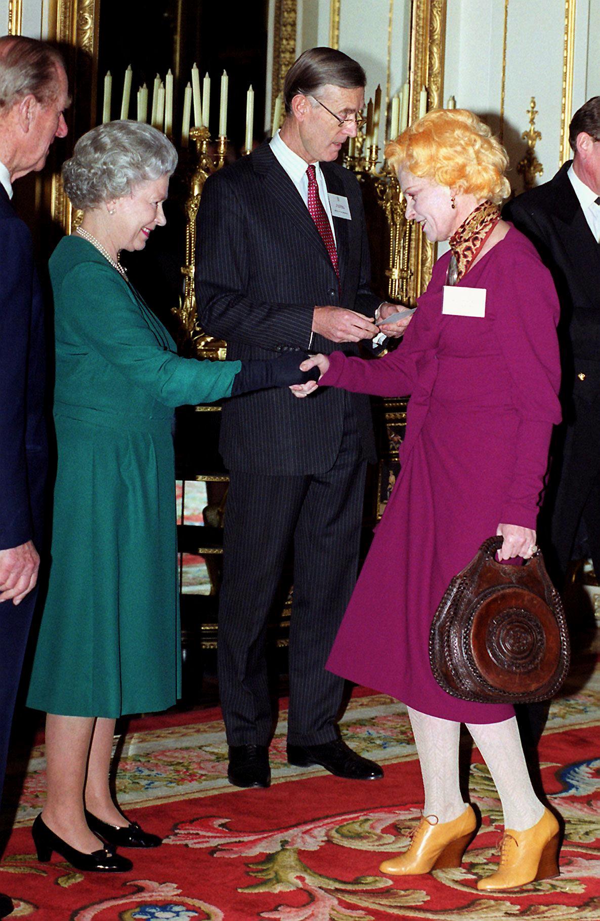 Vivienne Westwood meets Queen Elizabeth II at a reception at Buckingham Palace in 1999.(AFP: Fiona Hanson/pool)