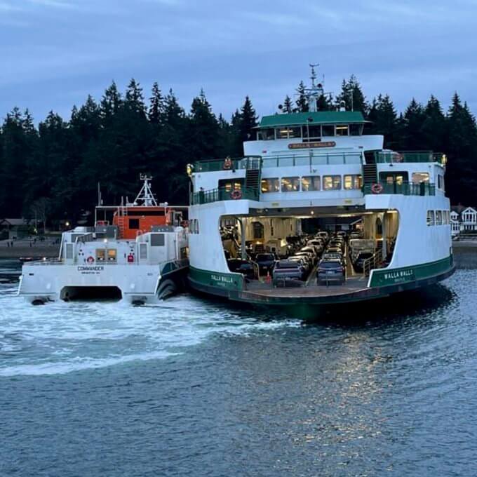 The smaller ferries Waterman and Commander, provided by Kitsap Transit, diverted to the scene and were able to pull alongside the Walla Walla so that passengers could transfer directly aboard. The last passengers disembarked at about 2200 hours, and they were all delivered safely to Bremerton.