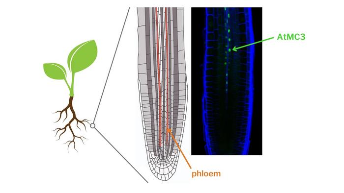 Scheme of the localization of the protein AtMC3 in the root (Credit: CRAG).