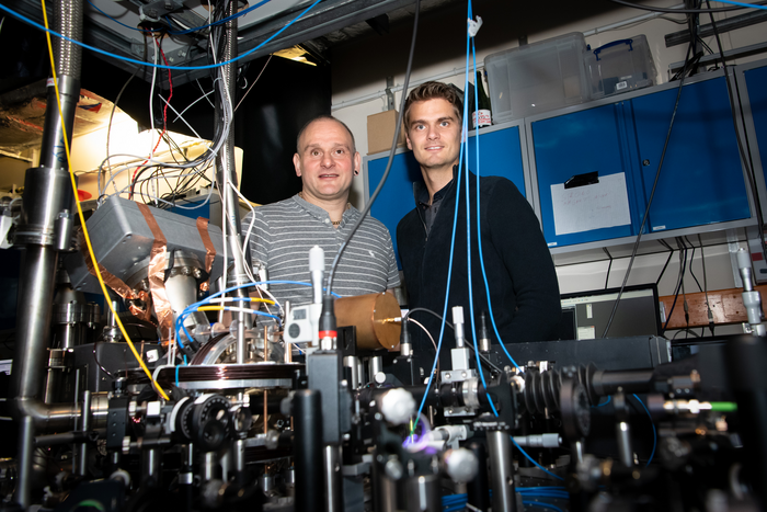 University of Sussex and Universal Quantum scientists, Professor Winfried Hensinger and Dr Sebastian Weidt in University of Sussex quantum computing labs.